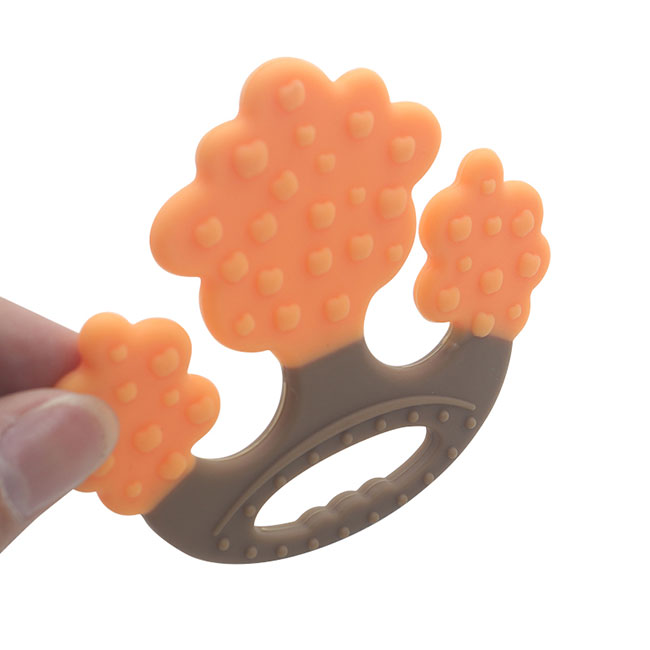 嬰兒硅膠磨牙棒產(chǎn)品選用可食用級(jí)的材質(zhì),可高溫水煮無(wú)異味。此款蘋果樹(shù)有著多形態(tài)啃咬點(diǎn)設(shè)計(jì),柔軟硅膠多觸點(diǎn),全方位啃咬,按摩寶寶每一寸牙齦,緩解長(zhǎng)牙期的不適應(yīng)。
